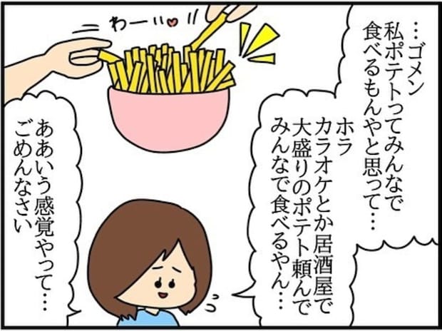チコちゃんに悪気はなく、ポテトはみんなで食べるものという感覚だったという説明に、夫は納得してしまいました。