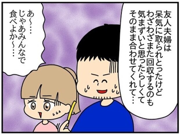 チコちゃんの予想外の行動に、友人夫婦も戸惑ってしまいます。楽しいはずの食事が気まずい時間となってしまいました。