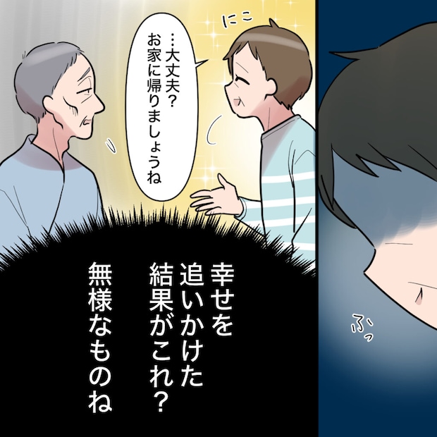 幸せを求めて家を出た省吾さんでしたが、戻ってきた時には大病を患い、見る影もない姿になっていました。本来そばにいるべき加奈子さんを裏切り、家のお金まで愛人につぎ込んだ末に、最後はお払い箱のように捨てられてしまうなんて。あまりにも哀れな結末ですね。