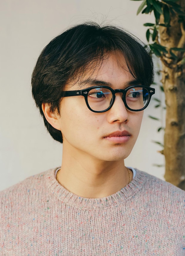 『モスコット』のクラシカルなメガネが知的なアクセント役に抜擢。シンプルな装いも小物で外すと、こなれ見えが叶う。