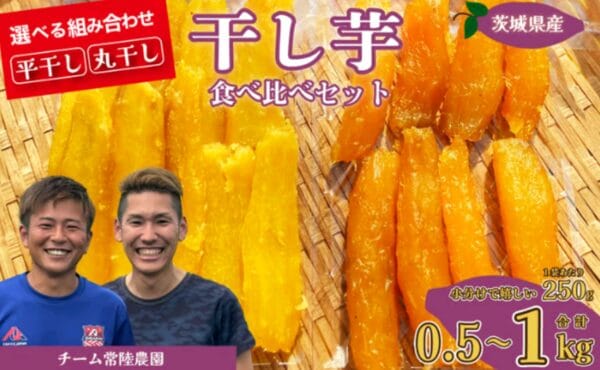 さらに、「平干し」と「丸干し」を一度に楽しめる「平干し・丸干し 食べ比べセット」も用意。干し芋は、開封後は密閉して冷蔵庫で保存し早めに食べよう。商品の特徴上、硬さや糖度に若干の違いがある場合がある。表面に繊維や黒ずみが見られることがあるが、いずれも品質には問題ないとのこと。