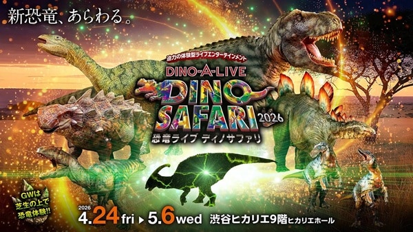ON-ARTは、体験型ライブエンターテインメント・DINO-A-LIVE「DINO SAFARI 2026」を、4月24日(金)~5月6日(水)のゴールデンウィーク期間に、渋谷ヒカリエ9階ヒカリエホールで開催する。