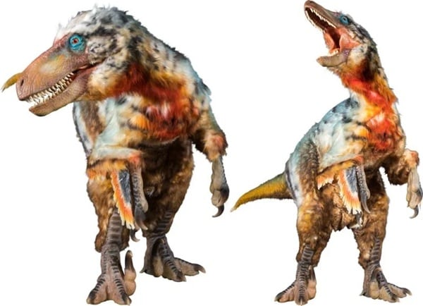 ユタラプトル(全長4.8m)も2頭も登場する。