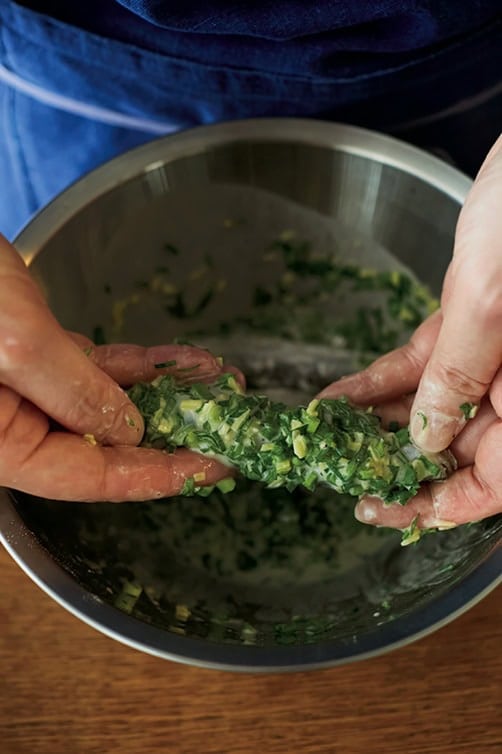 POINT/にらをたくさん加えた衣は、ししゃもにのせるようにまとわせること! さらに衣がくずれないよう、揚げるときは固まるまで触らずに加熱を。