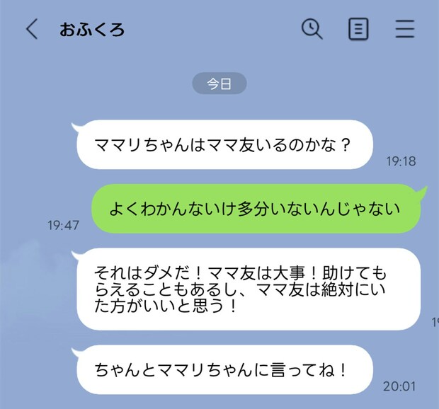 義母が『ママ友は大事、ママ友がいると助かるよ』と旦那とLINEしてました。