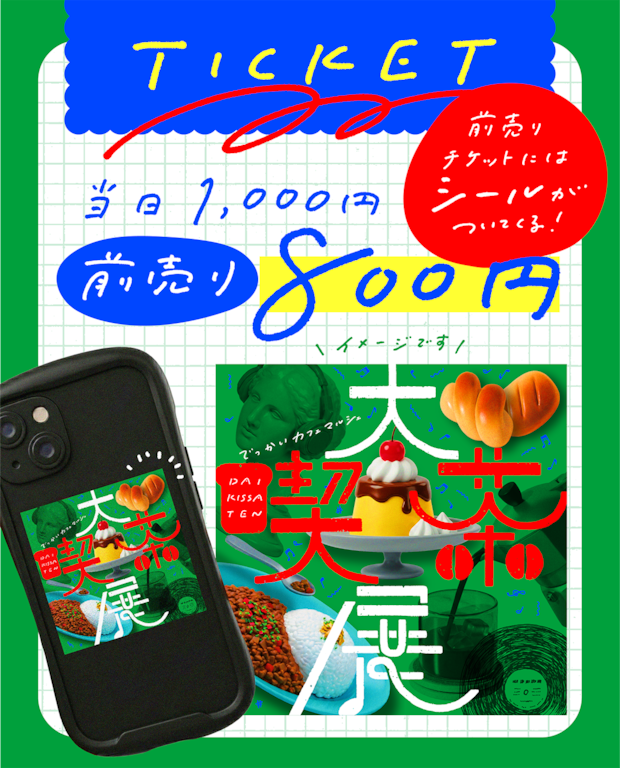 前売りチケットをご購入の方には、「大喫茶展オリジナルステッカー」をプレゼント。