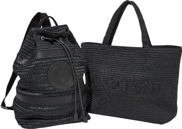 潔ぎよいオールブラックがいい! トートバッグ[H34×W50×D17㎝]¥368,500、スリングバッグ[H49×W31×D24.5㎝]¥412,500(共にサンローラン バイ アンソニー・ヴァカレロ/サンローラン クライアントサービス)