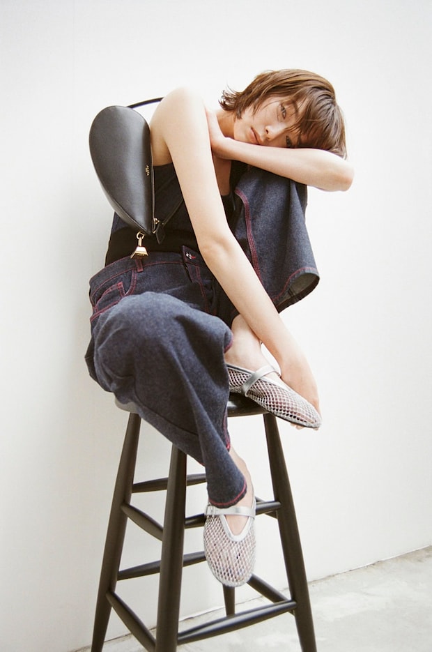 今、大ブームの“バレエコア”。2024年秋冬はメンズ服にまで波及する勢いを見せているこのトレンドの影響で、目下マストバイなのがバレエシューズ。ウィッシュリストの筆頭にあがるのが、アライアの「ラ バレリーヌ」です。日本の伝統的なシューズが着想源というこちら、デザインはそのままにレザーのカットワークや、煌びやかなラインストーン付きなどバリエーション豊富に展開。なかでも人気のメッシュ素材には新色シルバーが仲間入り。ハートを半分にしたようなフォルムの新型バッグ「ル ドゥミ クール」もお見逃しなく。