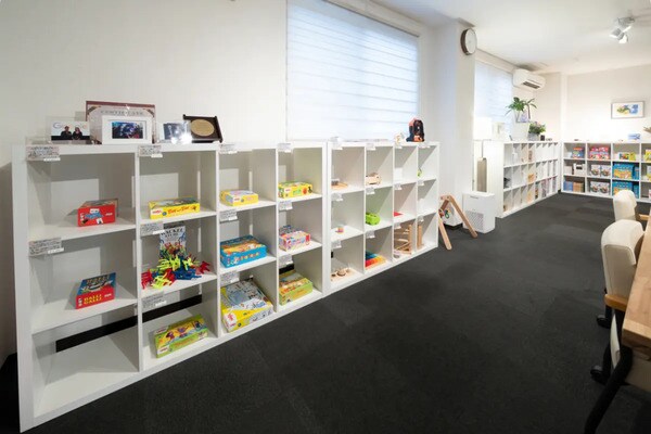 来店した1組ごとにしっかりと時間を設け、家族だけの空間でゆっくりと実際におもちゃで遊び、遊び方を体験し、納得いくまで試せる。