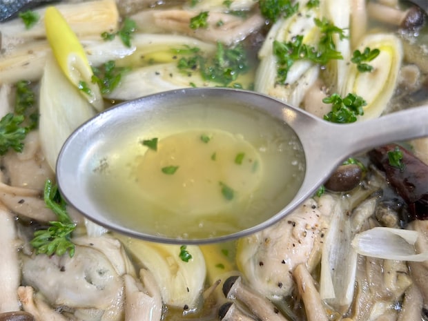 ひと口すくって口に含むごとに牡蠣のコクとしめじの香りが重なり合って、奥行きのある味わいが楽しめました。