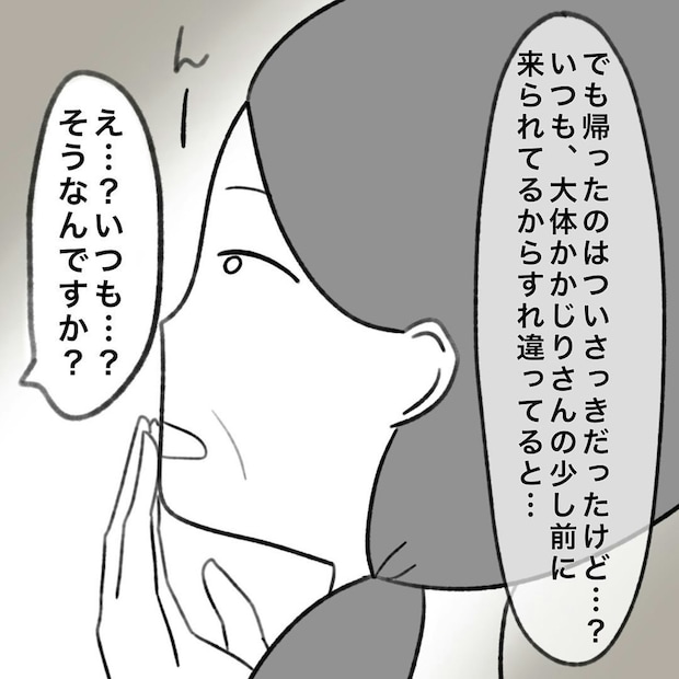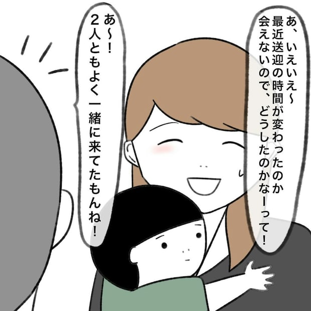 しかし次は、先生にかかじりさんの落とし物としておさがりの袋を預けていたり、車のボンネットにおさがりを入れた袋を置き、嫌がらせを続けてくるのでした。我慢できなくなって、渡部さんに直接言うことを決めて待ち伏せをするも、会うことはできません。でも渡部さんの息子のゆずる君は登園しています。疑問に思ったかかじりさんは、先生に聞いてみます。