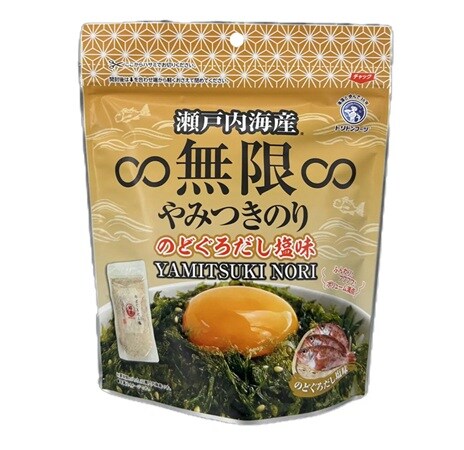 「∞無限∞やみつきのり のどぐろだし塩味」は、風味豊かな「瀬戸内海産」原料を100%使用。