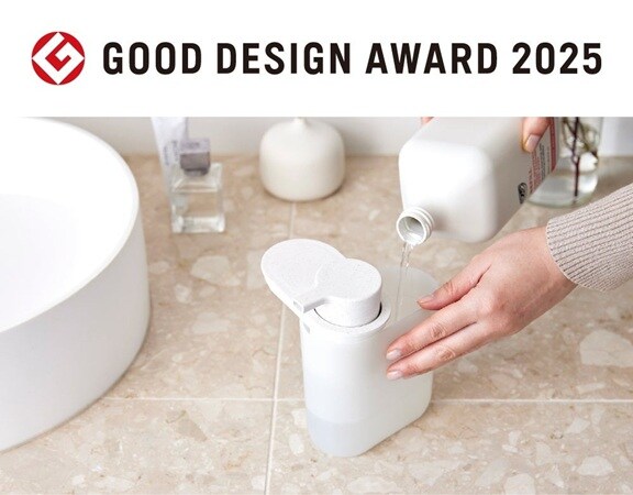 「Soap dispenser」は、2025年度グッドデザイン賞受賞。詰め替える時、ポンプを開けてずらすだけでソープの補充ができるソープディスペンサー(泡タイプ専用)だ。