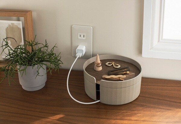 「Tray & case」は、美しく飾りながら収納できる2段のケース。上のトレイはアクセサリーや小物を飾りながら中身を隠すフタの役目があり、下の深型ケースは見せたくない細々としたお手入れ用品やケーブルなどを収納できる。
