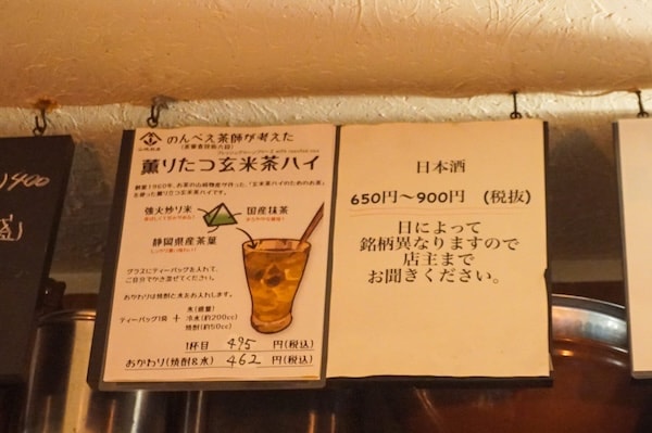 香ばしさと甘みが重なり、ふつうのお茶割りとは一線を画す。グラスを傾けるたび、夜の時間が少し上品にほどけていく。
