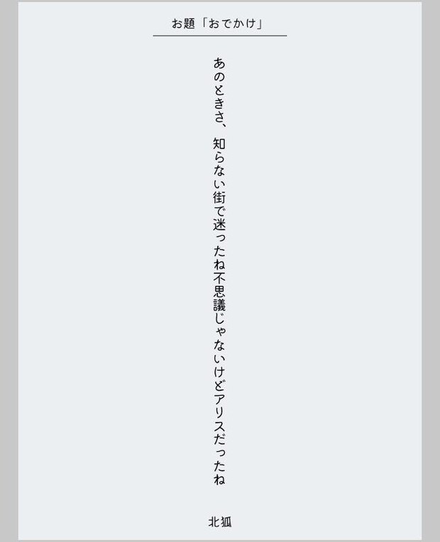 あのときさ、知らない街で迷ったね不思議じゃないけどアリスだったね (投稿者/北狐さん)