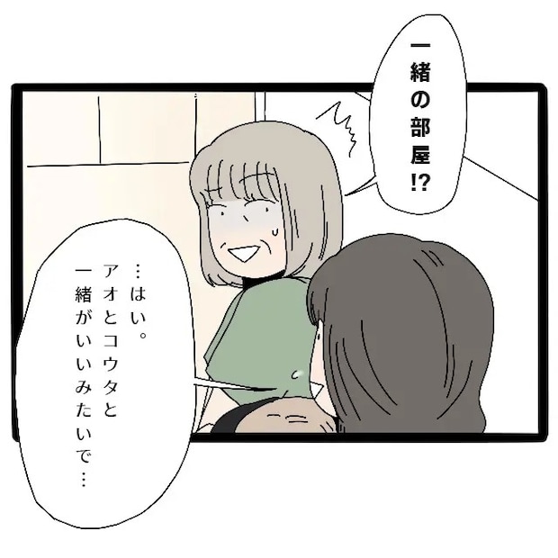 「え!?一緒の部屋・・!?」そう話すさよさんに、「・・はい。アオとコウタと一緒がいいみたいで・・」そう答えた後、