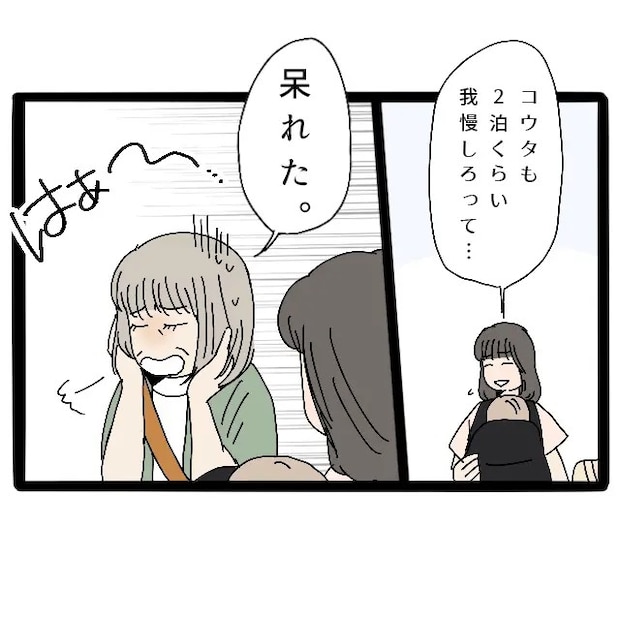 「コウタも2泊くらい我慢しろって」私の言葉を聞いたさよさんが「はぁ~・・呆れた」とため息をつきながらいいました。