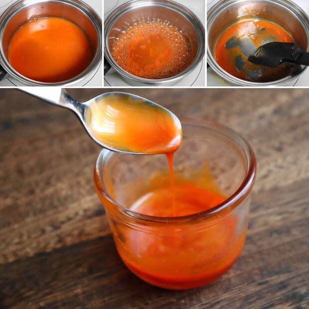 鍋に材料を入れ、軽くとろみがつくまで煮詰めるだけ。冷めるととろみが強くなり、つやっつやのキレイなソースに!