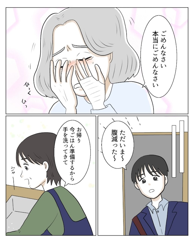 それを聞いた義母は、「ごめんなさい。本当にごめんなさい」と涙を流して謝りました。