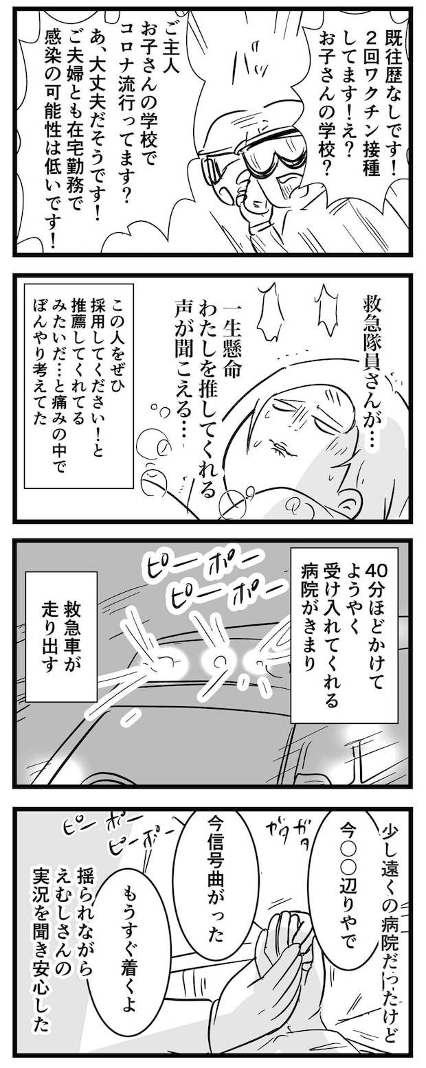 夫と救急隊員さんの連携プレーで搬送先がようやく決まった