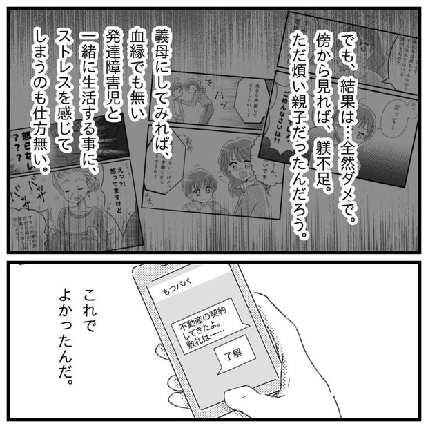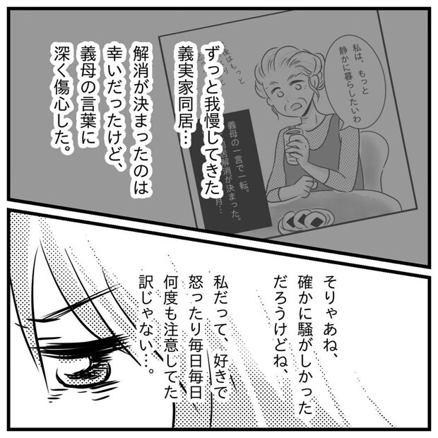 望んでいた同居の解消ですが、今まで義母にはうるさい親子だと迷惑がられていたのかなと、心の隅でモヤモヤと考えてしまうもっつんさん。