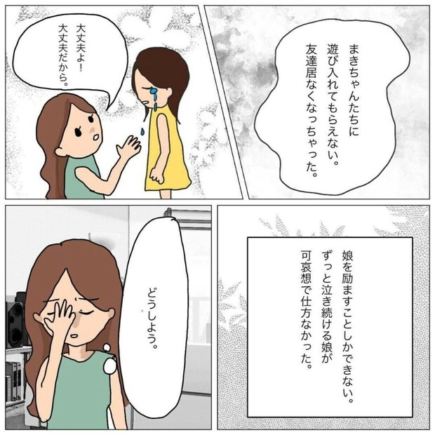 もっちさんのフォロワーさんの娘であるりさちゃんは、友達のSNSに返事ができなかったことをきっかけに、グループのボスのような存在のまきちゃんから無視され始めてしまいました。