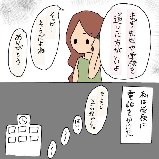 エスカレートしていくいじめに、ママであるフォロワーさんは他のママ友に相談したり、学校に連絡をしたりとさまざまな対応をします。