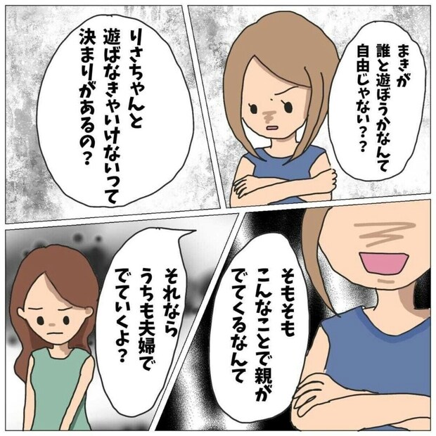 そしてまきちゃんのママに直談判もしに行きますが、「まきが誰と遊ぼうかなんて自由じゃない?」と凄まれてしまいます。途方にくれたフォロワーさんの話を聞いたパパは、内容証明を送ることに。