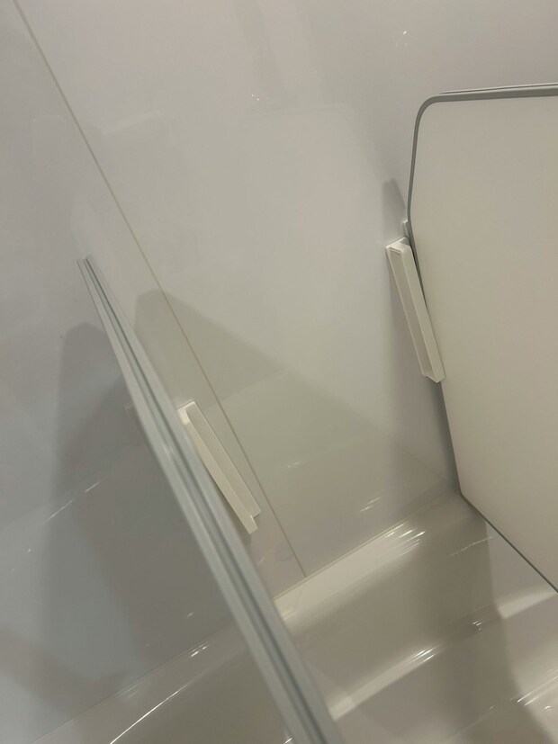 入浴が終わった後は2つのタオルバーで挟み込むようにして、浴槽フタを立て掛けて乾かせます。これなら水切りもよくなりますし、風通しも良さそう!中にはマグネットがつかない浴室もあるため、試す前に一度確認してみてくださいね。