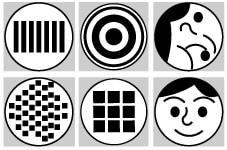生後46時間から生後6か月の赤ちゃんを対象とした実験から、赤ちゃんの好みのパターンも明らかになりました。図にあるような柄、同心円や縞模様、顔のような図形を、赤ちゃんは好むことがわかったのです。