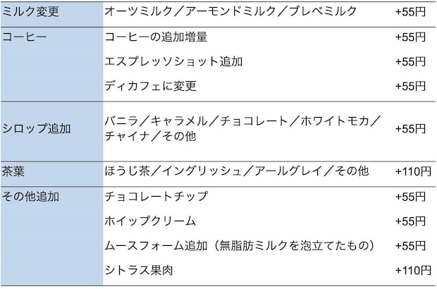 スタバでは無料でカスタマイズできるものと、有料のものがあります。