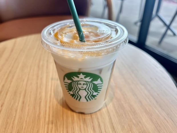 無料のキャラメルソースをたっぷりかけてもらえば、ふわふわにキャラメル風味が加わりまるでカフェスイーツみたいな贅沢ドリンクに!