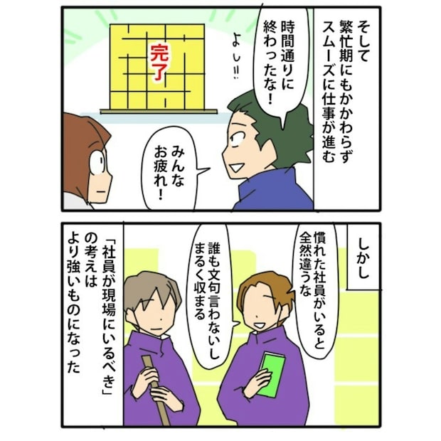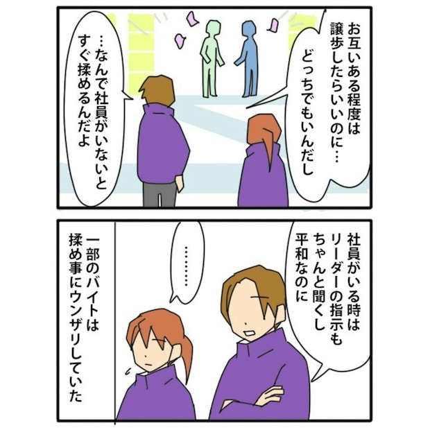 社員がいることによって現場がまとまり、アルバイトスタッフ同士のもめごともほとんど起こりませんでした。しかし、社員がいないことにより、現場は再びまとまらなくなる…という実態があったようですね。