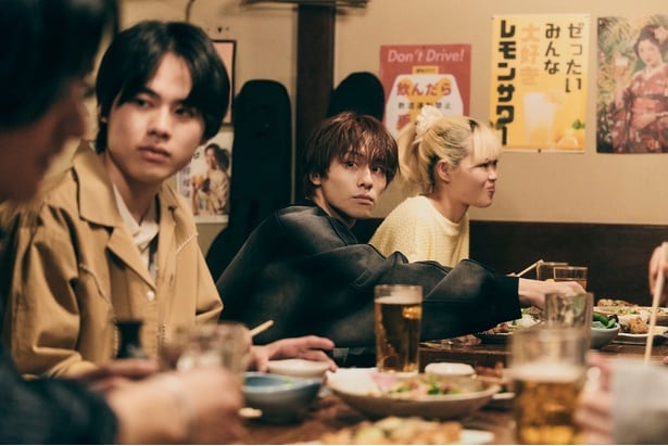 また軽音サークルのオフショットでは、飲み会シーンの撮影中に談笑する出演者たちのリラックスした表情に加え、宮崎優が得意のドラムを共演者に教える一幕も。撮影現場の和やかなムードが伝わってくる内容となっている。