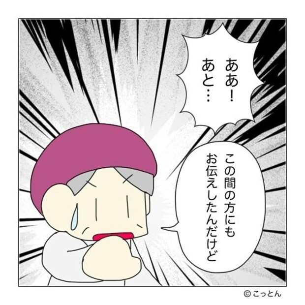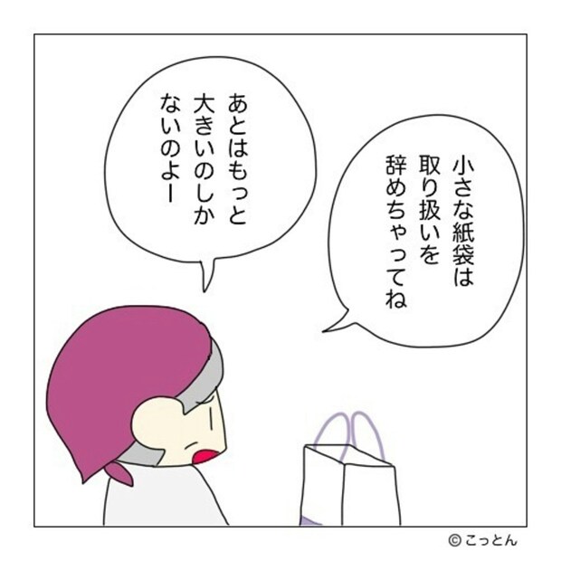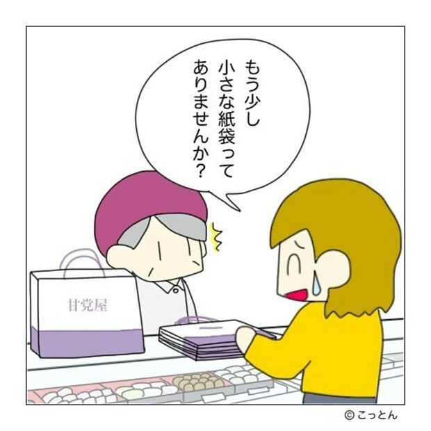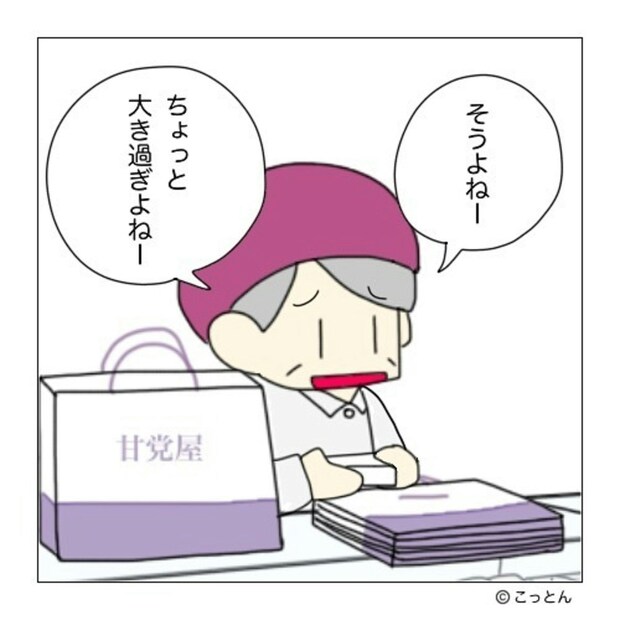 主人公・山吹さんは、子ども会の新一年生歓迎会の当日に来賓に渡す紅白饅頭を受取りにきました。そこで、饅頭の大きさに似合わない大きな紙袋が気になったものの、べき子さんが発注していることもあり変更せずに受取りました。帰り際、お店の人が「この間の人にも伝えたけど」と言い始め…。