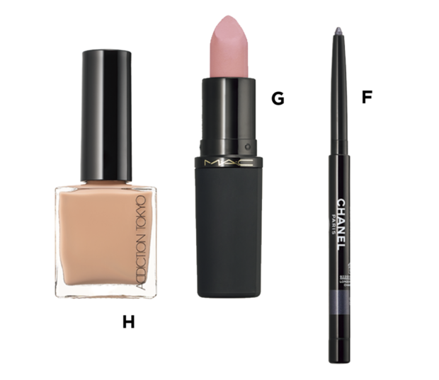 F スティロ ユー ウォータープルーフ N 98 ¥5,060(シャネル・2月27日数量限定発売) G パウダー キス ヘイジー マット リップスティック ガールズ ウィーケンド ¥4,840(M・A・C) H アディクション ザ ネイルポリッシュ + 047C ¥2,420(ADDICTION BEAUTY)