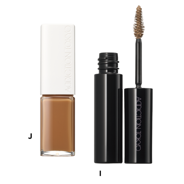 I アディクション アイブロウマスカラ カラーニュアンス 102 ¥3,300、J 同 ザ リップグロス 009 ¥4,070(共にADDICTION BEAUTY)