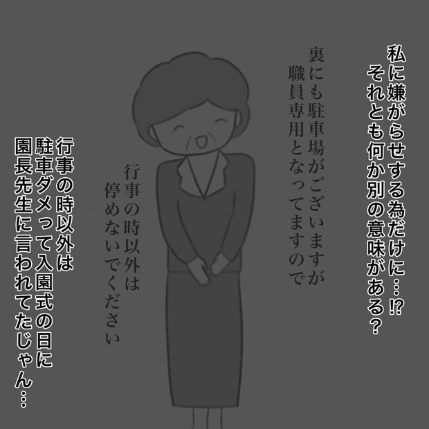 職員専用駐車場に停めることで、かかじりさんに見つからないように工夫していたのです。そこまでして嫌がらせをしたかったのですね。