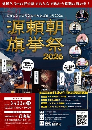 MMKが主催する地域イベント「源頼朝旗挙祭2026(みなもとのよりともはたあげまつり)」が、3月22日(日)の11:00〜19:00に、真鶴町・岩海岸で開催される。