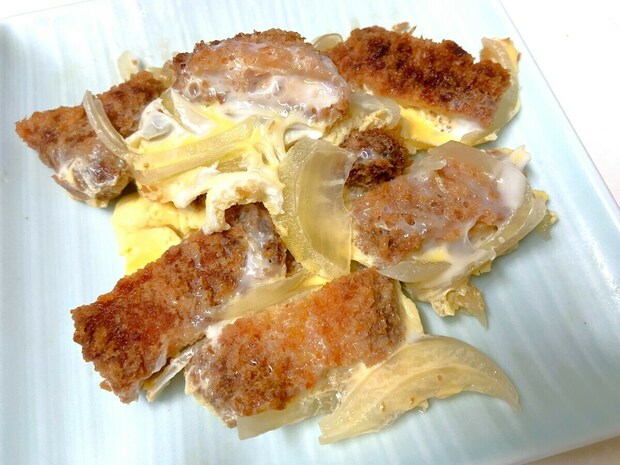 とんかつで作るようにサーモンメンチフライを使って卵とじにしてみました!