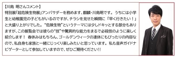 アンバサダーにはお笑いコンビ「麒麟」の川島明さんが就任。音声ガイドナビゲーターも担当し、展示の魅力をわかりやすく案内してくれる。