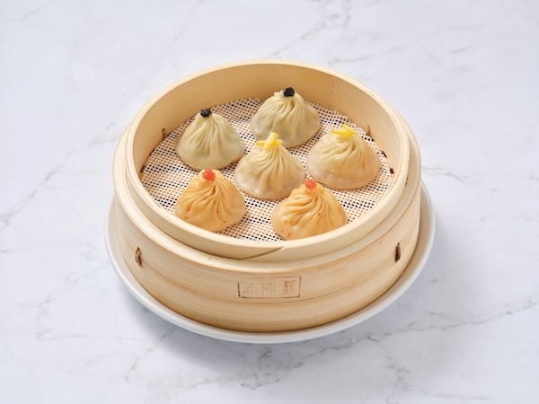 トリュフ小籠包・明太子小籠包・柚子胡椒小籠包がセットになった「贅沢小籠包三種盛り」6個入り1,580円(税込)、