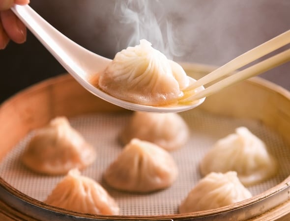 「京鼎樓」の小籠包は、熟練の点心師が餡と皮を一から店内で手作りしている。美味しさの秘訣は超薄皮で包んだコラーゲンたっぷりの豊潤スープと豚肉の餡。熟練の点心師の技を集結させ、選りすぐりの素材と独自の製法で蒸し上げられた小籠包は、中が透けて見えるほどの「超薄皮」。熱々を頬張れば、スープと厳選された豚肉の風味が口いっぱいに広がる。