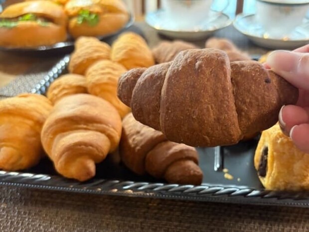 チョコデニッシュは生地にココアの風味が効いた、ほんのりビターで大人な味わい。
