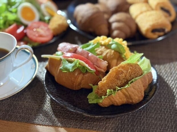 また、プレーンを半分にカットしてレタスやベーコン、コロッケなど冷蔵庫にある具材を挟めば、まるでおしゃれなカフェのようなミニクロワッサンサンドに大変身します。