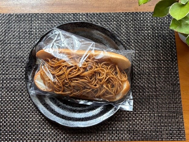 あまりにも焼きそばがはみ出しているためパンが全く閉まらず、「お箸を使って食べないといけないかも!?」と戸惑ってしまうほどの量感に驚かされます。