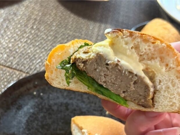バンズの大きさは直径約10cm、重さ約49gと、大手ハンバーガーチェーンと同じか少し大きめくらいのしっかりとしたサイズ感。