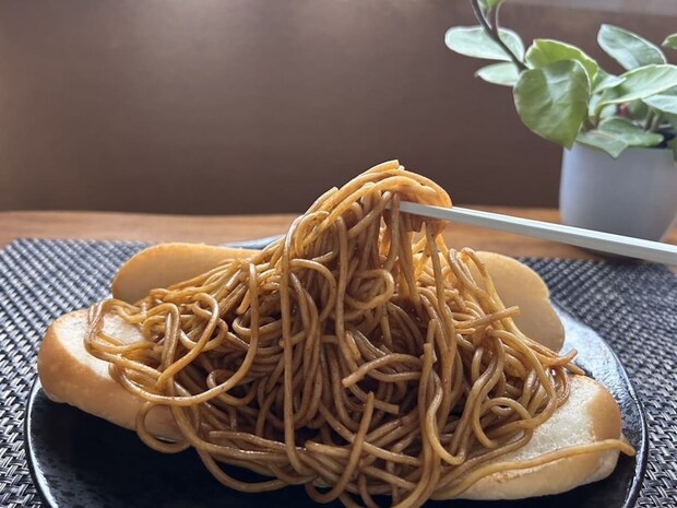パンからあふれんばかりの焼きそばがサンドされており、SNSでも「量がヤバい!」と話題になるほどの圧倒的なボリュームを誇ります。