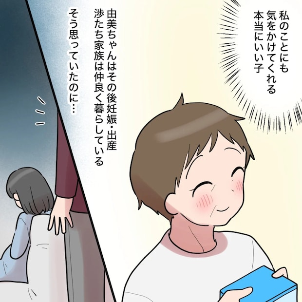 由美ちゃんはうちにお嫁に来てからも、いつも私に気を配ってくれました。嫁姑関係でつらい思いをしてきた私は、「お嫁さんには口出ししない」「必要以上に顔を合わせない」そう心に決めていたのですが、由美ちゃんはこまめに連絡をくれたり、手作りのおかずを持ってきてくれたりと、自然な優しさを向けてくれました。